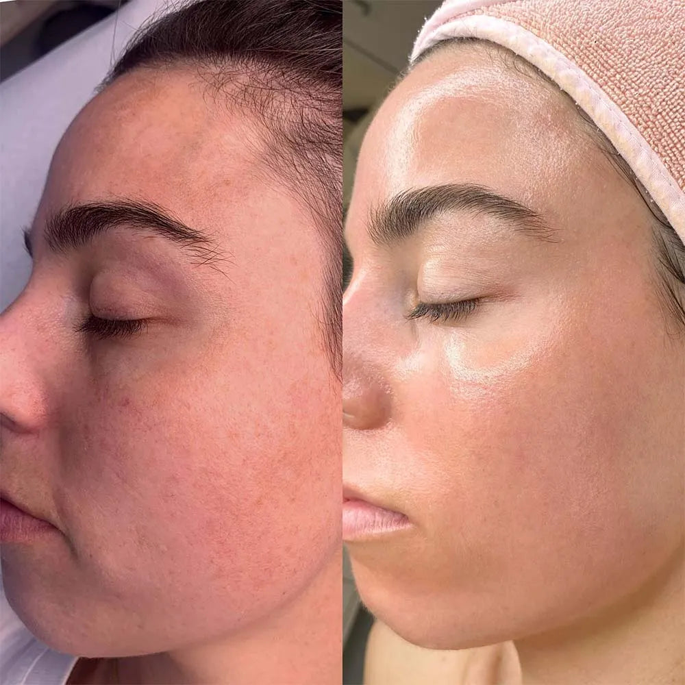 Skin tone appears more even and overall texture looks smoother and clearer.